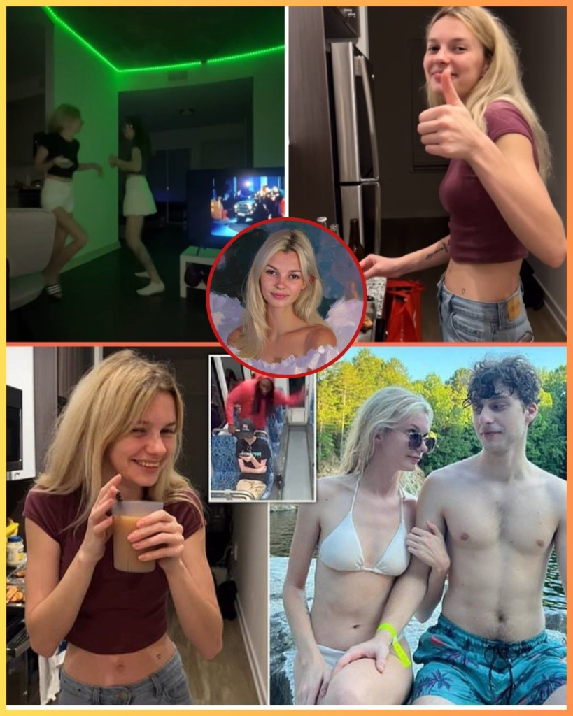 In one clip, she embraces her boyfriend, Stas, in an elevator, smiling at the camera; in others, she pulls faces, dances, and laughs without a care in the world.