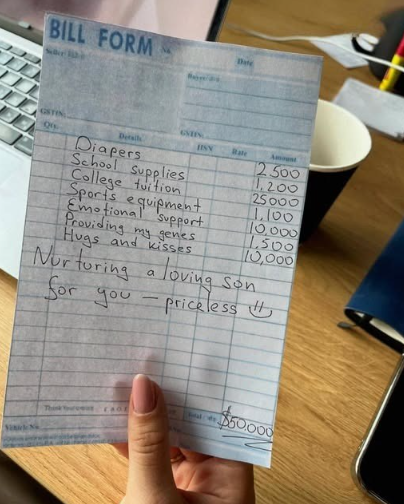 The audacity of her invoice both enraged and amused me. But instead of yelling, I decided on a creative response. Over the next few days, I drafted my own **itemized invoice**. Line by line, I listed the hidden costs of having Laura in my life: therapy sessions Edward needed, the emotional toll of her constant criticism, awkward family dinners where I was made to feel like an outsider, and the years I spent helping Edward learn what a healthy relationship actually looked like. I even added “teaching your son empathy and confidence” with a hefty price tag.