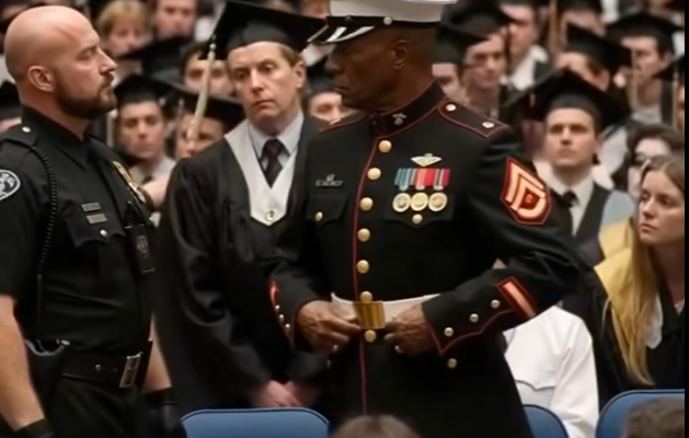 The crowd, realizing what was happening, applauded. The principal quickly intervened and welcomed Solomon back to his seat with sincere gratitude for his service. When Tyran walked the stage and saw his father standing tall, his eyes shone with pride only years of love could build. Afterward, the young men gathered around Solomon, thanking him for setting an example of strength and humility. That day, Solomon learned that sometimes honor isn’t loud — it simply stands, and the world recognizes it.