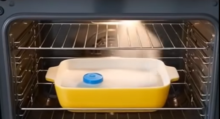 Cleaning an oven is often a dreaded chore, but Nana’s no-fuss trick makes it surprisingly easy. Instead of harsh chemicals and hours of scrubbing, you only need three items: a dishwashing pod, a heatproof casserole dish, and water. Start by preheating your oven to 200°F (93°C). Fill the dish with water and drop in the dishwashing pod.