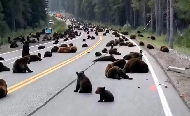 We were driving home after work and right in the middle of the street saw a dozen bears: we were shocked when we learned the reason