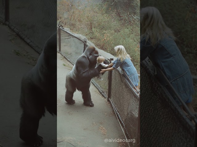 The gorilla’s actions were captured on camera, showing the remarkable intelligence and empathy displayed by these magnificent creatures. As onlookers held their breath, the gorilla carefully approached the baby, gently lifting it with its powerful yet tender hands. The crowd erupted in applause as the gorilla handed the baby back to its relieved mother, showcasing a moment of interspecies understanding and kindness.