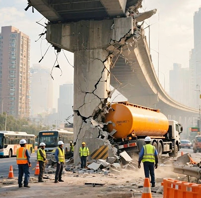 • Brazil (2024): A major highway bridge failed as a tanker carrying industrial chemicals attempted to cross. The aftermath included both human casualties and environmental harm.